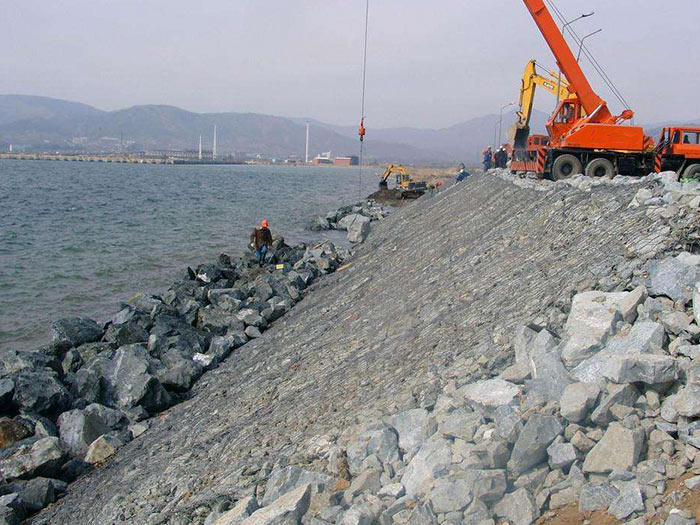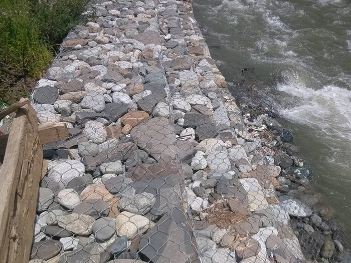 鋅鋁合金石籠網(wǎng)是一種生態(tài)格網(wǎng)結(jié)構(gòu)。石籠網(wǎng)由高抗腐蝕、高強度、具有延展性的低碳鋼絲或者包覆PVC的以上鋼絲使用機械編織而成,使用該網(wǎng)制作而成的箱型結(jié)構(gòu)就是石籠。根據(jù)ASTM和EN標準,所使用的低碳鋼絲直徑根據(jù)工程設(shè)計要求而不同。一般介于2.0-4.0mm之間,鋼絲的抗拉強度不少于38kg/m2,金屬鍍層重量一般高于245g/m2石籠網(wǎng)片的邊緣線直徑一般要大于網(wǎng)線直徑。其雙線絞合部分的長度不得小于50mm。以保證絞合部分鋼絲的金屬鍍層和PVC鍍層不受破壞。
