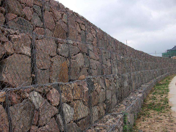 格賓網(wǎng)是金屬線材編織的角形網(wǎng)(六角網(wǎng))制成的網(wǎng)箱,使用的金屬線徑是根據(jù)六角形的大小而不同。如果是金屬鍍層的金屬線,則使用線徑為2.0mm到4.0mm的金屬線,如果是PVC包