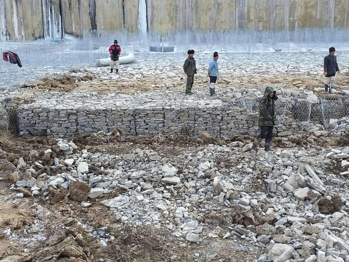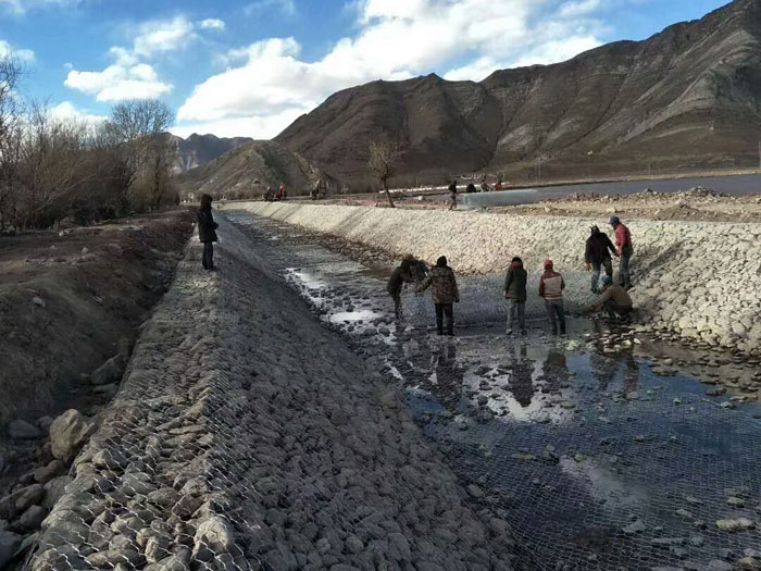 堤壩格賓網(wǎng)能有效制止海洋風(fēng)浪對(duì)岸邊沖刷浸泡后造成的潰岸、退岸,它是用鋼絲(8#線)編制成網(wǎng)片,按設(shè)計(jì)要求尺寸在岸邊擺放,裝入塊石封閉成石籠,石籠與石籠連結(jié)成排,覆蓋著被海水沖刷的岸坡(陸上和水下),起著防水沖刷護(hù)岸固腳的功效,它是目前水利工程中較常用的、簡而易行的、便于施工的較佳方法。